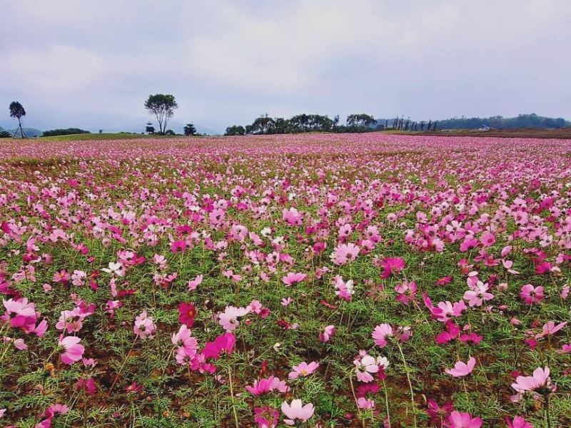 🌼🎉 丹內的花海時刻! 大波斯菊盛開,滿地粉嫩夢幻
